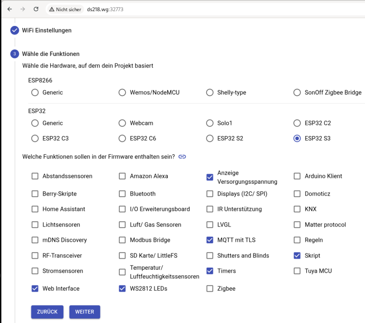 Die folgenden Screenshots zeigen den sehr kurzen Weg zur Home-Brew Tasmota Firmware mit einem ganz eigenen Feature-Set: