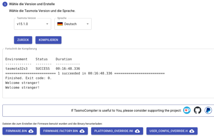 Nach erfolgreicher Kompilierung wird die erstellte Firmware zum Download angeboten:
