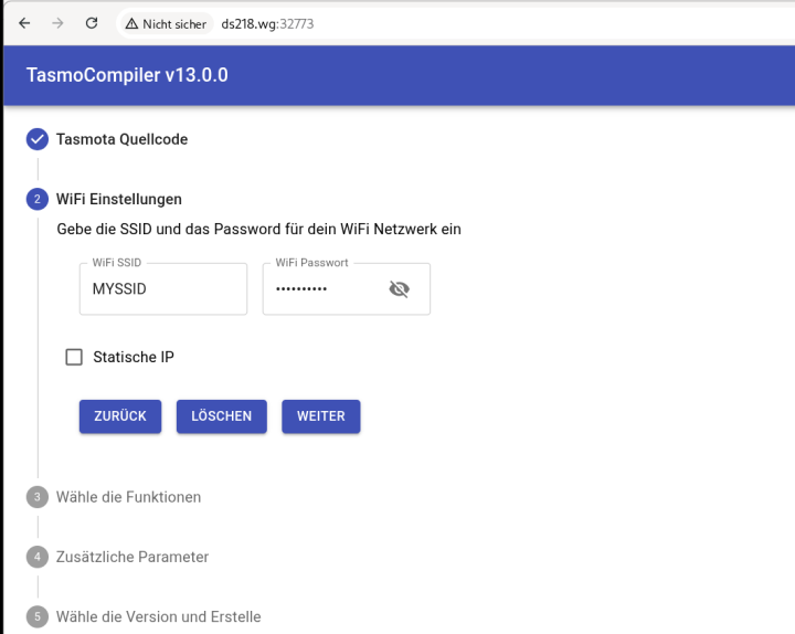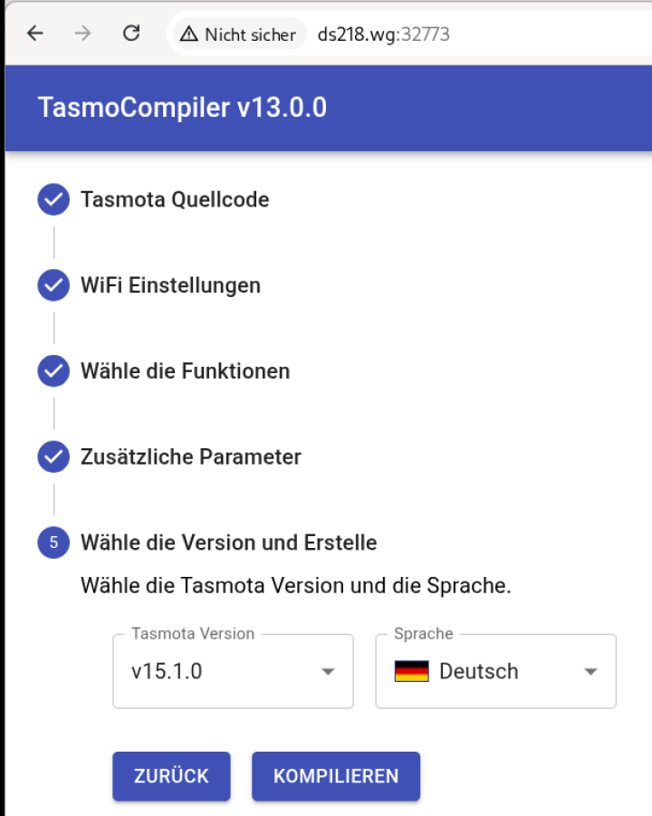 Die folgenden Screenshots zeigen den sehr kurzen Weg zur Home-Brew Tasmota Firmware mit einem ganz eigenen Feature-Set:
